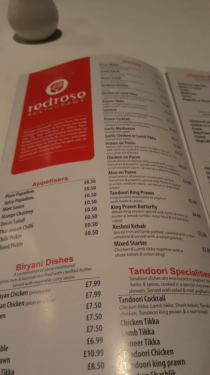 From the moment you open the menu, you're met with a rich selection of starters-from onion bhajis that arrive crispy and golden, to tender chicken tikka that’s expertly marinated and chargrilled. The mains are where Red Rose really shines. Their signature Balti dishes are fragrant and perfectly portioned, while the lamb Rogan Josh is a standout: slow-cooked, rich, and layered with deep tomato and aromatic spice. The vegetable sides, such as saag aloo and tarka daal, hold their own as flavourful and hearty complements to any main.